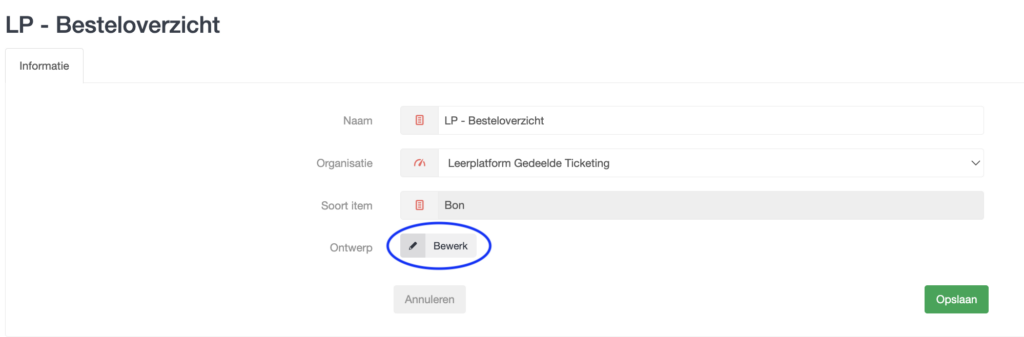 • Ga naar: Admin > Lay-outs > Tickets > Voeg ticketlay-out toe