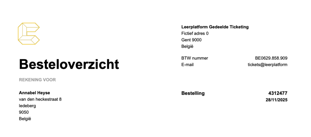 Het document toont dan enkel het ordernummer en de besteldatum