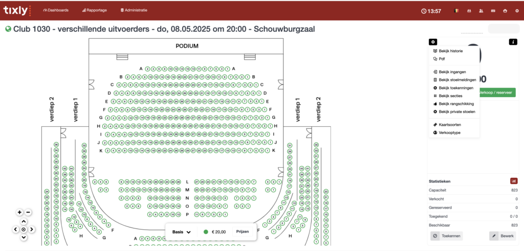 - Ga naar het verkoopsdashboard van een evenement met het betreffende zaalplan.