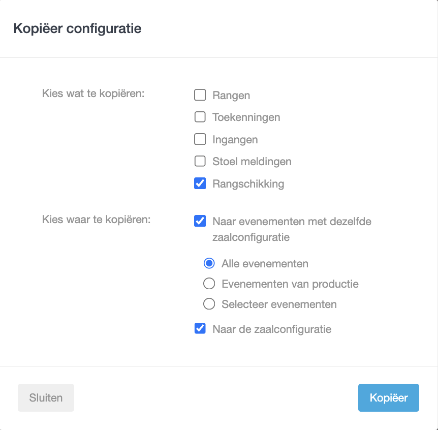 - EN/OF de Zaalconfiguratie zelf: slaat op alle toekomstige evenementen.
