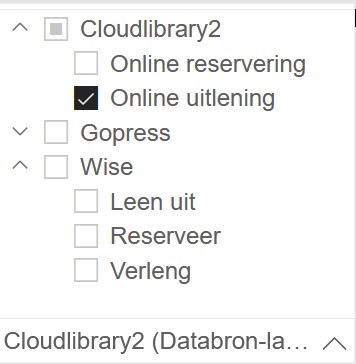 Om toplijsten te maken van de digitale collecties kan je bij de filter op Actiesoort instellen voor welk collectieonderdeel je de cijfers wil optellen. Elk collectieonderdeel kan uitgeklapt worden met het pijltje naar beneden om de onderliggende actiesoorten te zien. Vink je het vakje naast het collectieonderdeel zelf aan dan worden alle onderliggende acties geselecteerd.