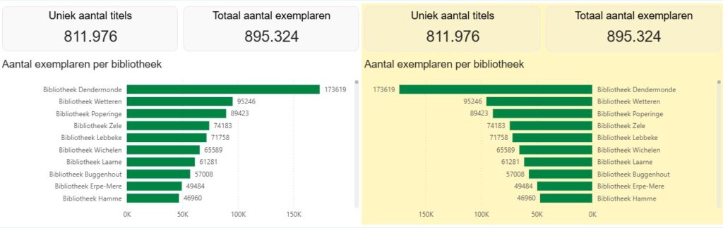 - per bibliotheek een overzicht van het aantal exemplaren en het % van het totaal