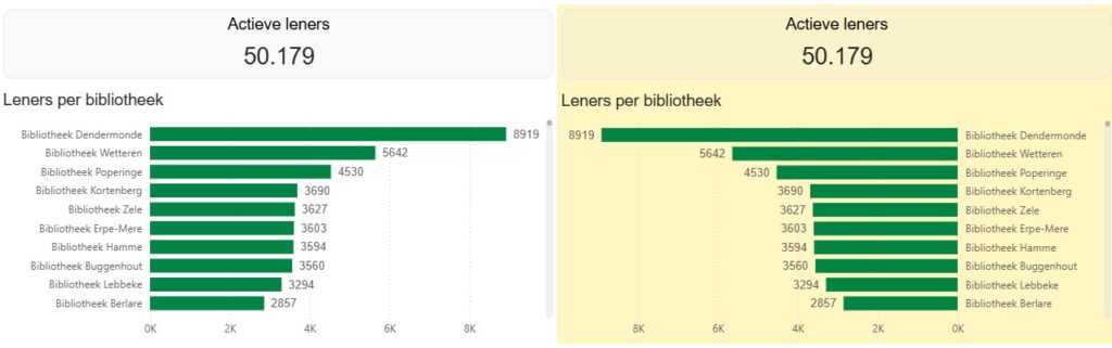 Leners per bibliotheek: het aantal actieve leners uitgesplitst per bibliotheek. Leners zonder ingevuld geslacht worden