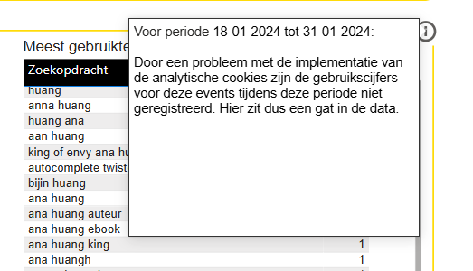 Wat: Door een probleem met de implementatie van de analytische cookies zijn de gebruikscijfers voor deze events tijdens deze periode niet geregistreerd. Hier zit dus een gat in de data.