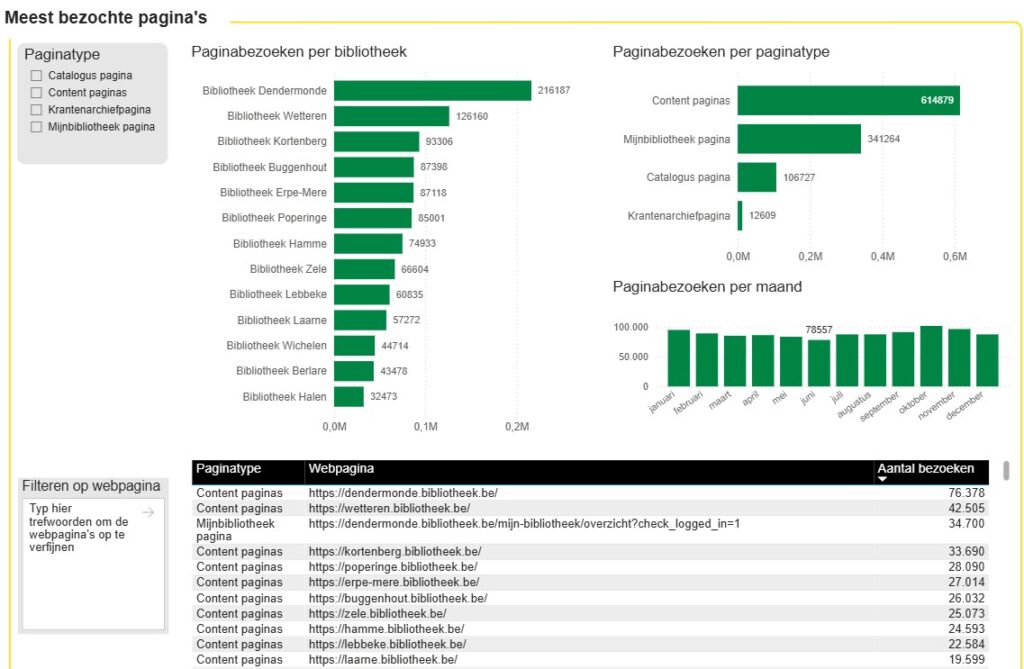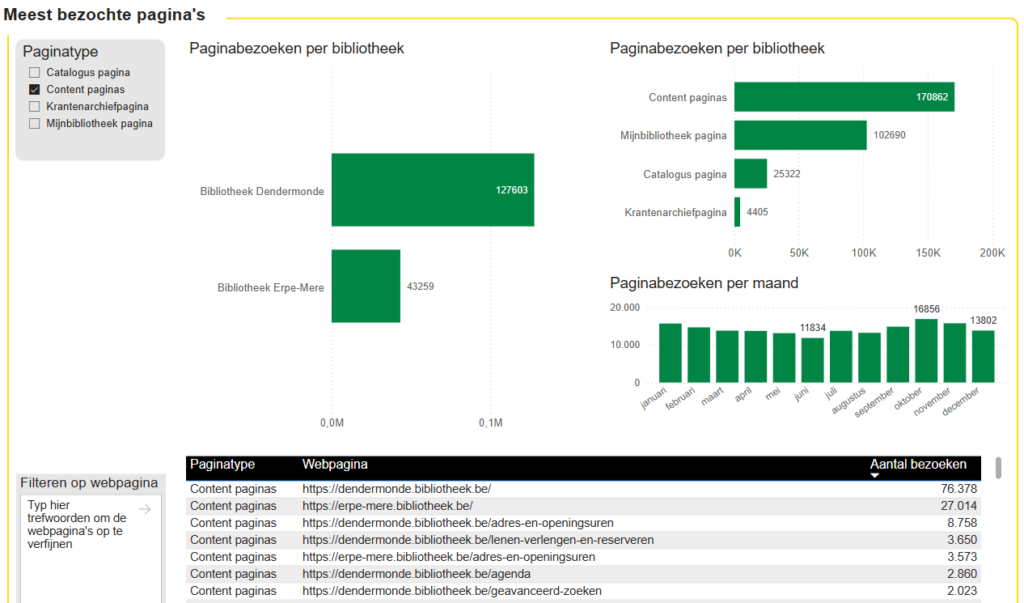 Paginabezoeken per bibliotheek: Aantal paginabezoeken uitgesplitst per bibliotheek.