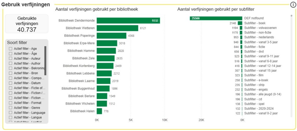 Gebruikte verfijningen: Aantal keer dat er een filter werd ingesteld op het zoekresultaat (over alle geselecteerde bibliotheken heen).