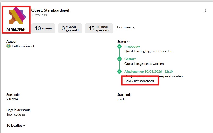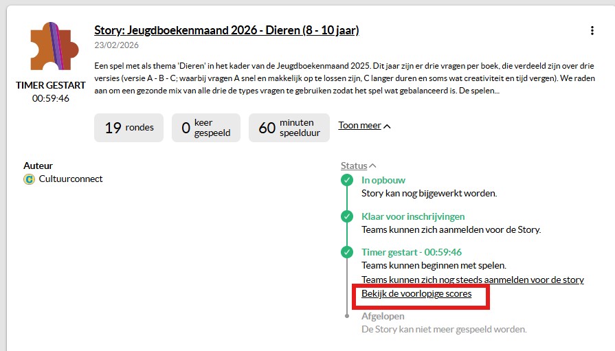 4. Aan het einde van een Story kan je in de backend ook een scorebord oproepen. Dit scorebord is beschikbaar zodra de tijd van de Story afgelopen is en op 00:00 staat. Achter de schermen worden de gegevens telkens na enkele minuten verzameld en als scorebord beschikbaar gemaakt.