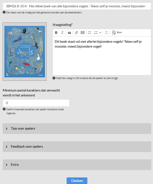 In het volgende scherm kan je dan de nodige aanpassingen doen en nog tips, feedback en extra informatie toevoegen. Ben je helemaal tevreden met de aanpassingen, kies dan voor ‘Opslaan’.