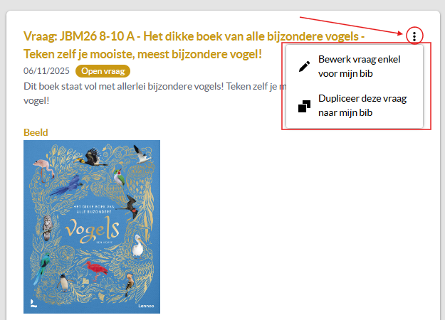 Als je op dit detailscherm de drie puntjes aanklikt, kan je ervoor ‘bewerk vraag enkel voor mijn bib’ selecteren.