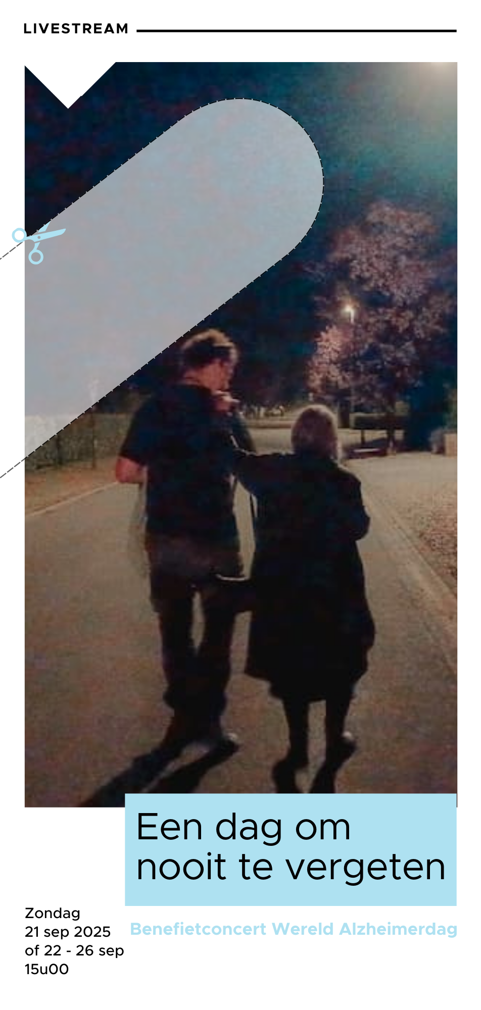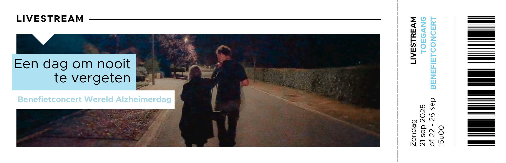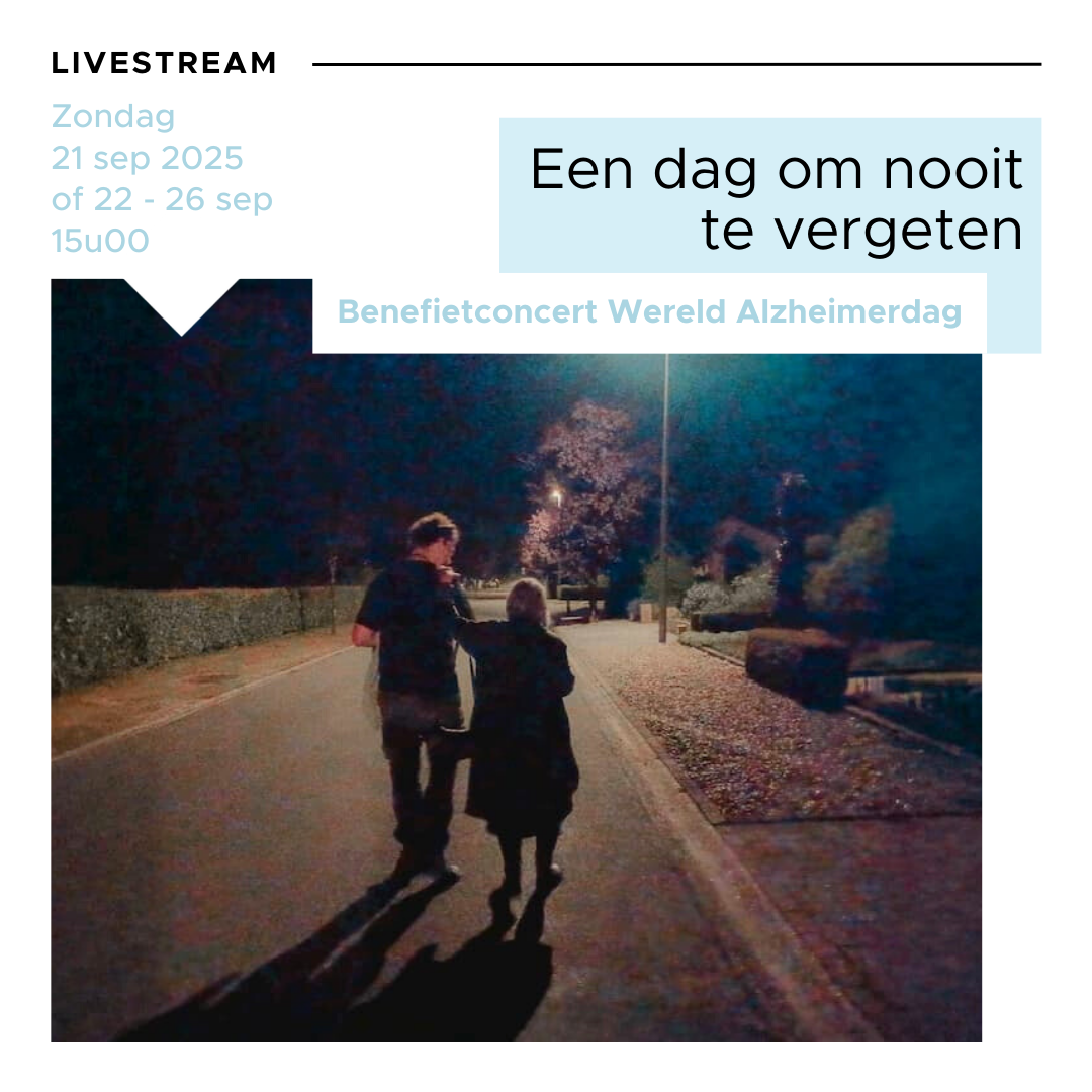 Dit initiatief wil niet alleen meer respect en bewustwording creëren rond dementie, maar ook bijdragen aan het vergroten van het besef dat één op de vijf mensen vroeg of laat met deze aandoening te maken zal krijgen. Voor mensen met dementie speelt muziek een belangrijke rol, aangezien melodieën en songteksten herinneringen kunnen oproepen, emoties losmaken en verbondenheid creëren. Dit jaar is het thema van Wereld Alzheimerdag “Samen Muziek Maken”, een perfecte weerspiegeling van de kracht van muziek in het leven van mensen met dementie. Beleef samen met ons dit concert via (live)stream en steun mensen met dementie en hun mantelzorgers. Zo omarmen we samen Wereld Alzheimerdag!
