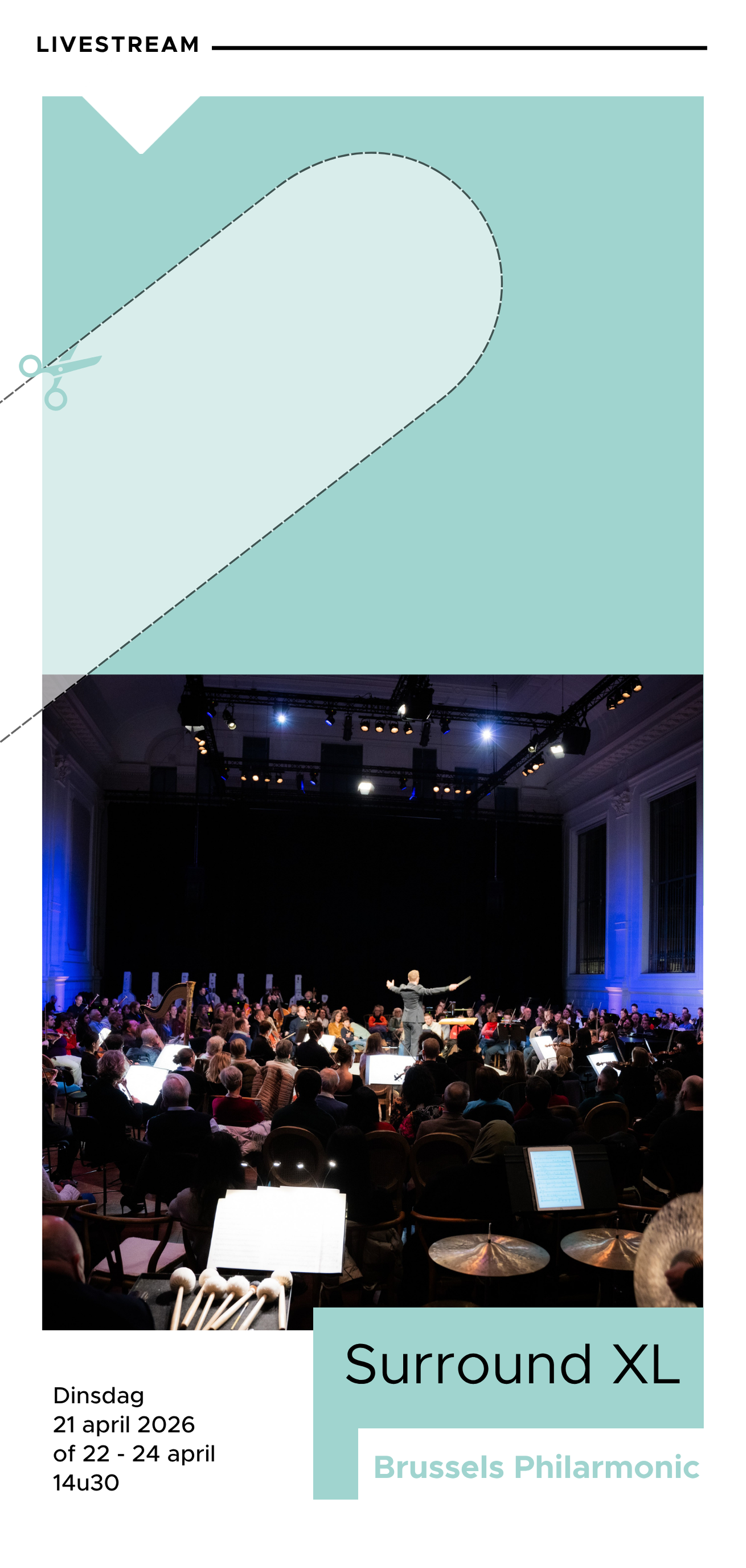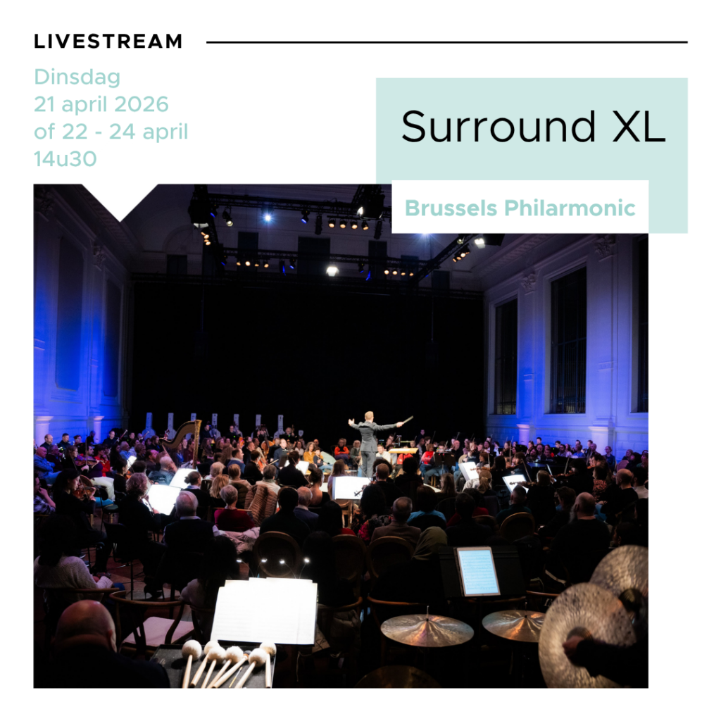 Met Surround XL haalt Brussels Philarmonic alles uit de kast om je klassieke muziek op een andere manier te laten voelen en beleven. Stel je even voor dat je dat symfonisch schoon tussen de muzikanten kan ervaren. De dirigent centraal, het orkest in een ruime cirkel eromheen, en het publiek … midden in het orkest! Het publiek zoekt zich een plekje uit tussen de muzikanten, en hoort de ademhaling van de blazers en beleeft de muziek zoals de musici zelf – van dichtbij, intens, levendig. En ja hoor, deze 360° beleving vertalen we ook naar beeld! We plaatsen onze camera’s tussen het orkest en het publiek om dit gevoel ook via streaming waar te maken. Een unieke virtuele beleving waar je klassiek dichter dan ooit beleeft.