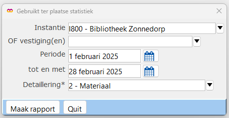 Via Exemplaren > Exemplaarstatistieken kan je nu ook kiezen voor Gebruikt ter plaatse statistiek. Je kan filteren op instantie of vestiging, periode en detaillering.