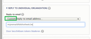 • Reply to: Omdat het verzendadres geen antwoorden kan ontvangen, is het belangrijk de ‘Reply to’ aan te passen. Wijzig deze van Default naar Custom en vul het e-mailadres in waarop je de reacties van gebruikers wilt ontvangen.