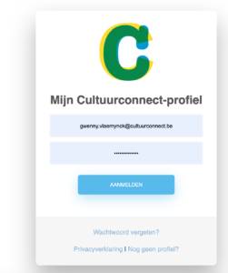 Stap 1: Meld je aan bij de Mijn Bibliotheek-administratie via https://mijn.bibliotheek.be/administratie met je Mijn Cultuurconnect-profiel.