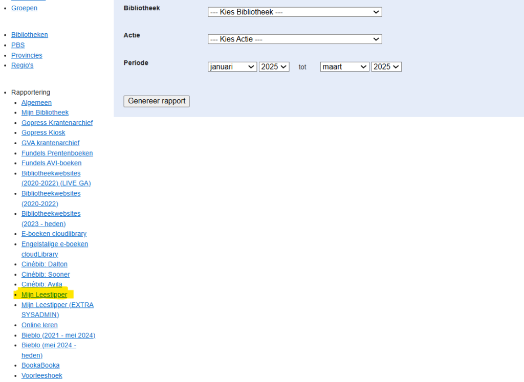 Stap 2: Onder ‘rapportering’ staat ‘Mijn Leestipper’. Hier vind je de cijfers voor jouw bibliotheek. Klik erop.