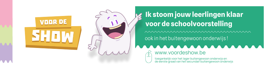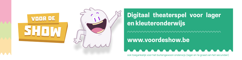 Hieronder vind je al het beschikbare promotiemateriaal van Voor De Show: promo-, demo- en teaservideos, een presentatie voor onderwijs, een banner voor je website en sociale media, het logo en png-afbeeldingen van Theo het theaterspookje, de handleiding en de dragers (postkaartje, roll-up banner, vlaggenlijn, stickervel met Theo-emoji’s en deel je flow-affiche). Het meeste promotiemateriaal bieden we enkel digitaal aan, enkele materialen kan je ook fysiek bestellen.