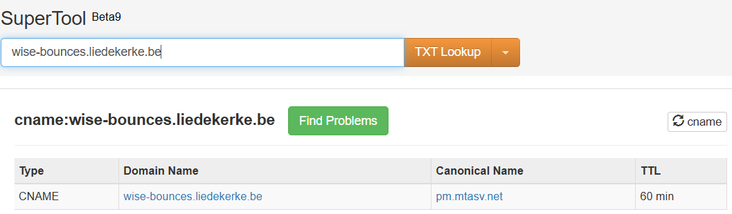 Vul wise-bounces.<domein> in, en je ziet of er pm.mtasv.net staat ( en dus niet pm.mtasv. )