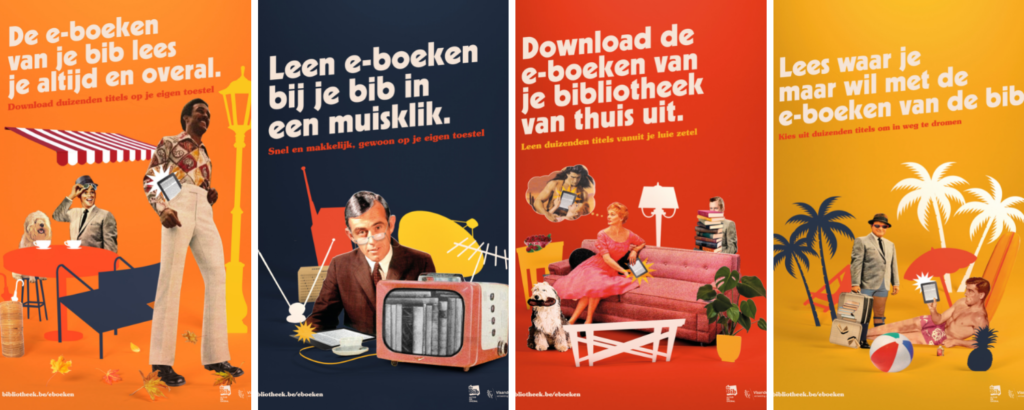 In de zomer (juli) en winter (november) van 2023 zullen affiches uithangen in verschillende, strategisch gekozen treinstations om de e-boekendienst van de bibliotheek te promoten. Om de campagne extra kracht bij te zetten, kan ook jouw bibliotheek deze zomer mee campagne voeren.