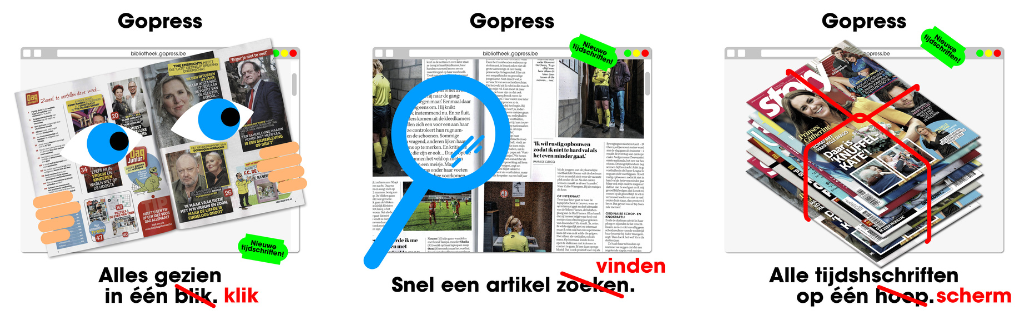 Hieronder vind je al het beschikbare promotiemateriaal: affiches, banners, vierkante visuals, een animatie, een logo en een e-mailhandtekening om op te hangen in de krantenhoek/de leeshoek. Zo laat je je publiek weten dat ze digitale kranten kunnen lezen in de bib. Wissel dit zeker af met aantrekkelijk fotomateriaal.