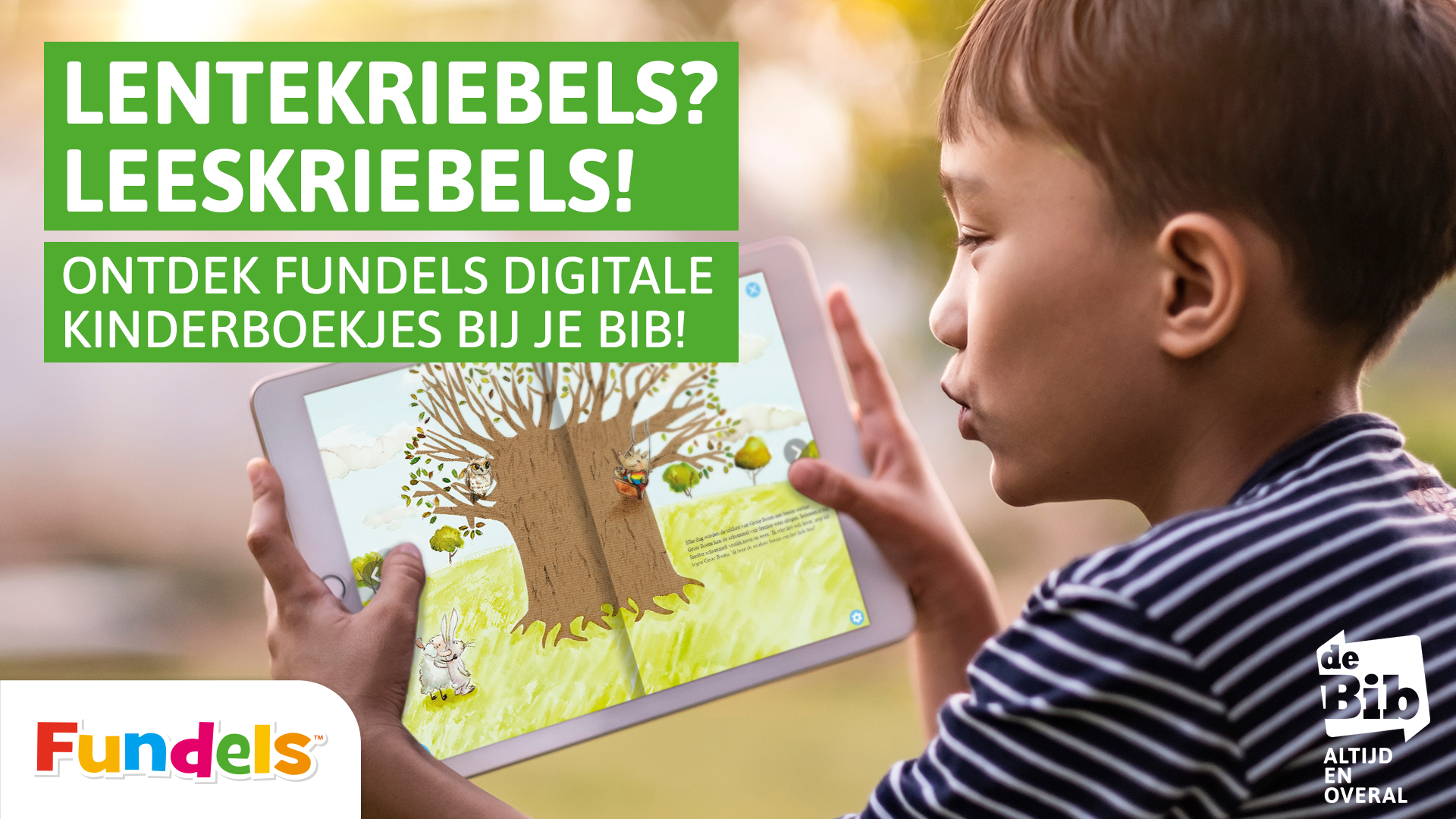 Schakel een fotograaf in voor eigen foto’s of gebruik foto’s uit de map met gedeeld beeldmateriaal van Cultuurconnect. Gebruik zeker ook aantrekkelijk fotomateriaal waarop je het logo van de bib en het logo van Fundels plaatst, bijvoorbeeld met behulp van de gratis tool Canva.