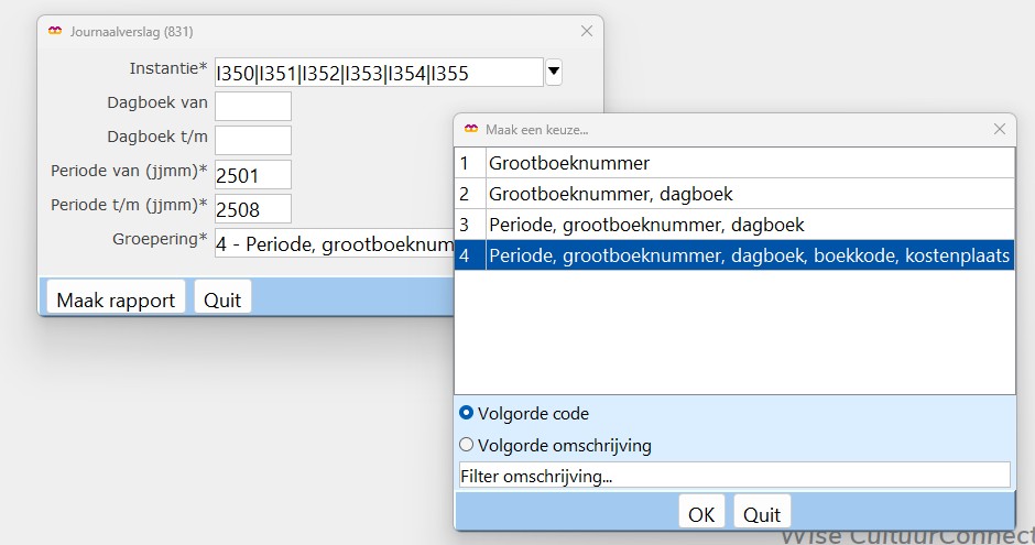 • kies voor de groepering optie 4 (Periode, grootboeknummer, dagboek, boekkode, kostenplaats)