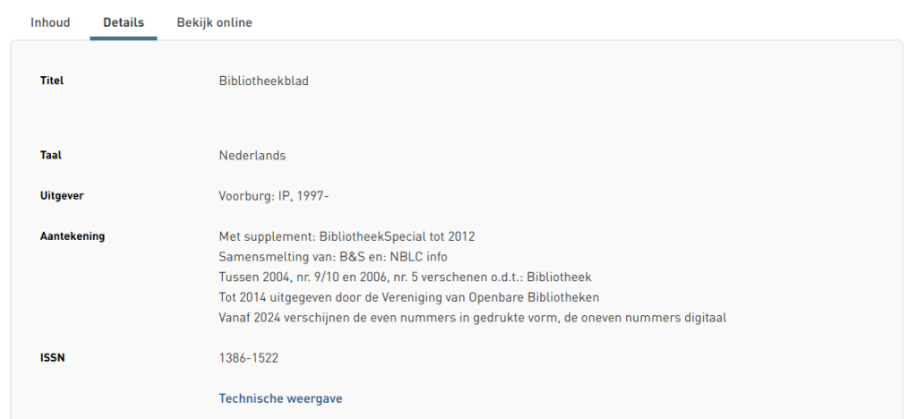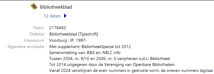 Normaal gezien staat in de titelbeschrijving vermeld dat het tijdschrift een mix is van fysieke en digitale nummers.