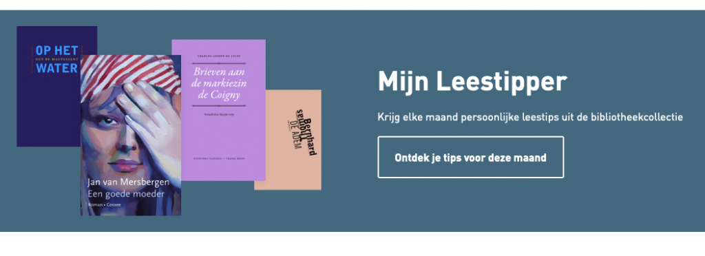 Op de homepagina van Mijn bibliotheek kan je Mijn Leestipper ook extra in de kijker zetten via de Mijn Leestipper-widget. Leners die Mijn Leestipper nog niet activeerden, krijgen een generieke banner te zien die doorlinkt naar de aanmeldpagina van Mijn Leestipper. Leners die dat wel al deden, zien in de banner meteen al de eerste vier leestips verschijnen.