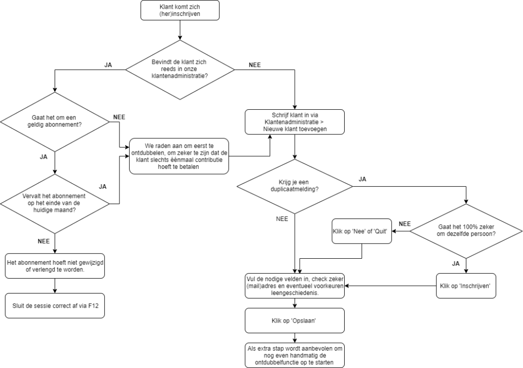 Workflow die je kan volgen bij het (her)inschrijven van een klant in een samenwerkingsgroep 1 of hoger