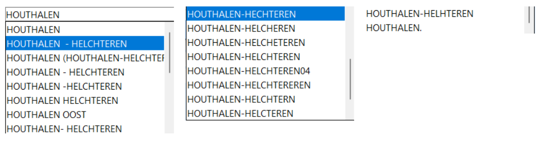 In de Wise client worden de suggesties bij invoer van een adres opgebouwd op basis van alle adressen uit de databank van Wise. Door de migraties van alle historische data en fouten bij manuele invoer is die data heel vervuild geraakt: