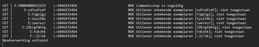 - Onbekende barcodes vanwege typfouten: de juiste barcode proberen reconstrueren en manueel alsnog uitlenen bij die lener en/of een melding of opmerking toevoegen bij een klant.